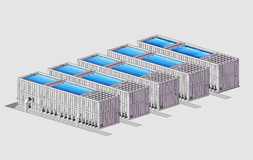 華通公司開(kāi)發(fā)的側(cè)向流水平沉淀工藝,集成了斜管沉淀工藝和斜板沉淀工藝的優(yōu)勢(shì),彌補(bǔ)了斜管沉淀和斜板沉淀的不足。在實(shí)現(xiàn)淺層沉淀的基礎(chǔ)上,既減小了流道面積,又改善了流體流向。側(cè)向流水平沉淀工藝能夠獲得非常高的沉淀效率以及良好的沉淀效果,并可以進(jìn)一步減少空間占用。豎向流生化處理技術(shù)
